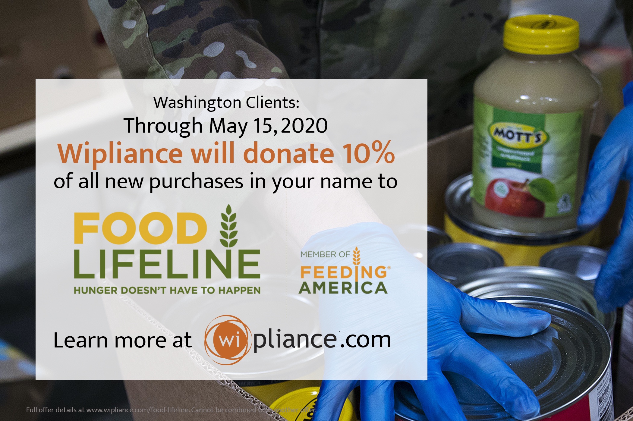 Now Through May 15- Wipliance to donate 10% of New Projects to Food Lifeline