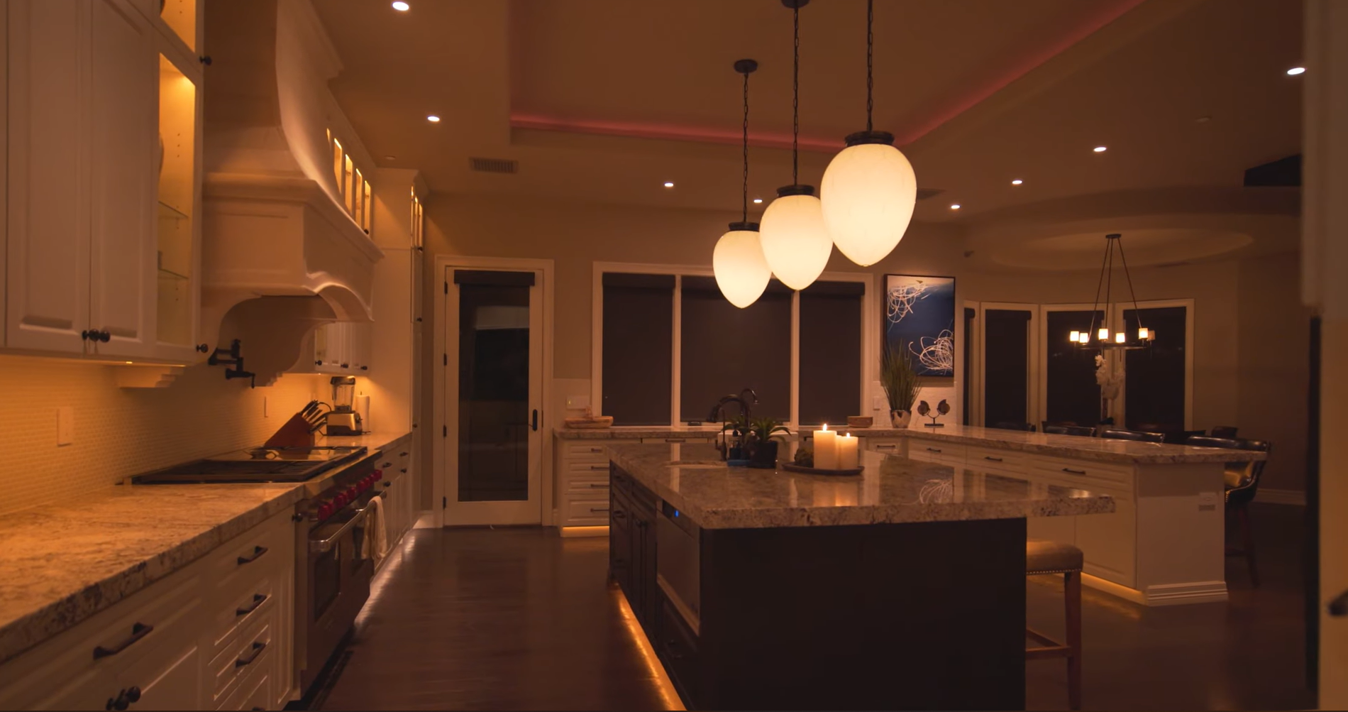These lights can be integrated into your home automation platform, allowing one-touch and automated control. We’ll program your lighting to adjust based on activities, time of day, and strategically placed sensors. For example, tap the ‘Entertain’ button on an in-wall keypad, and specific lights illuminate to pre chosen hues and temperatures, from arctic blue to candlelight and indigo. When it's time for bed, tap the ‘Good Night’ button, and all the lights turn off.