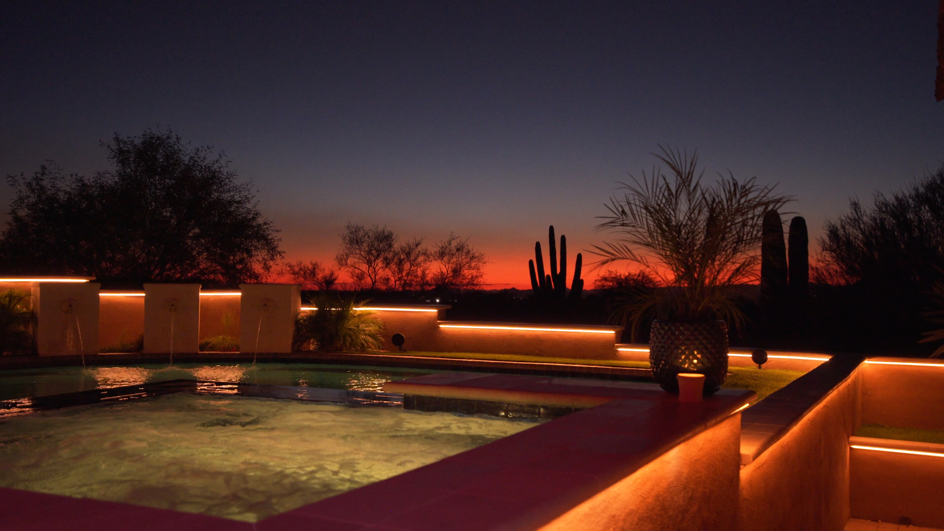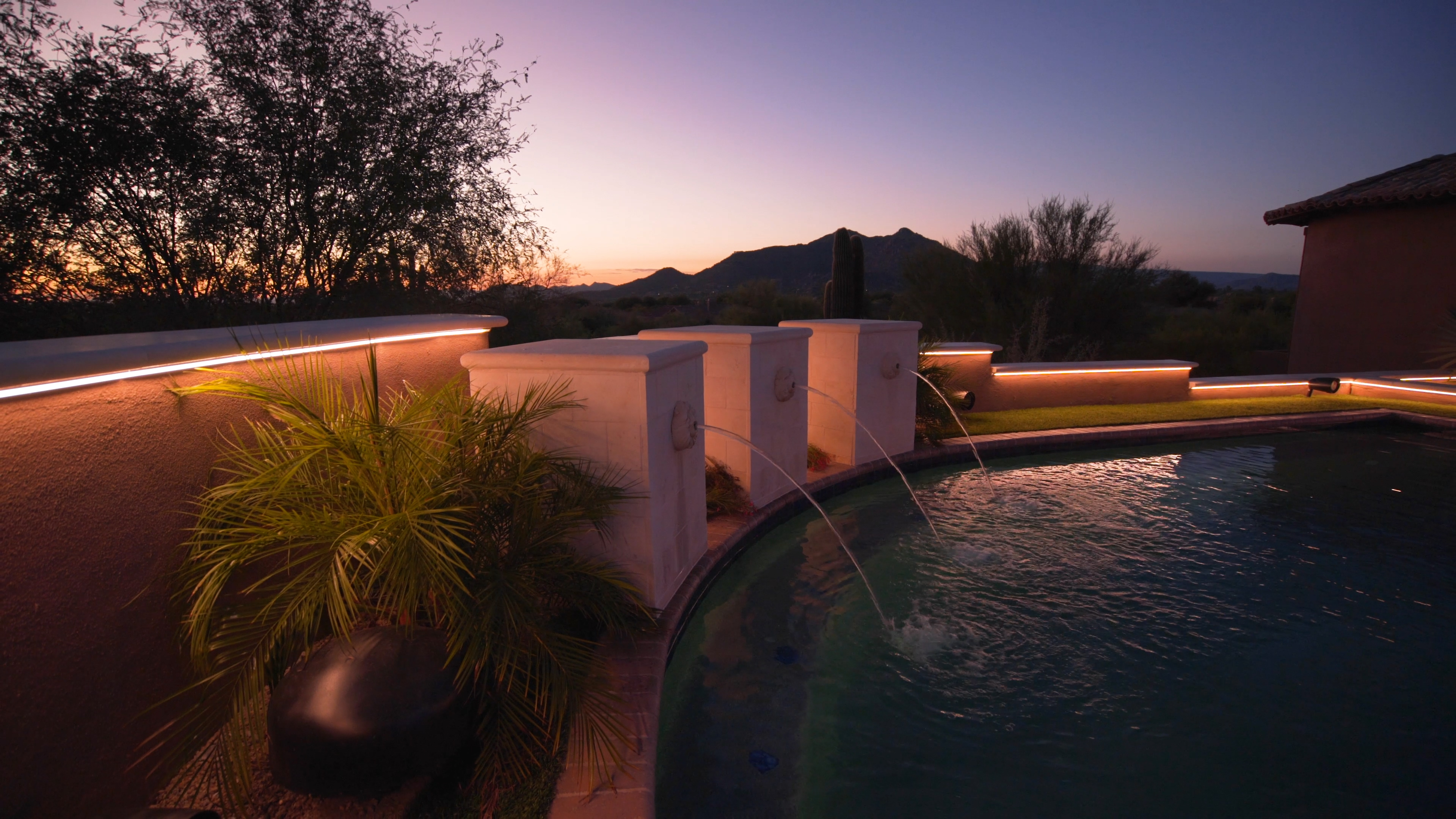 - Install layers of linear lighting along pool and in the ceiling woodwork