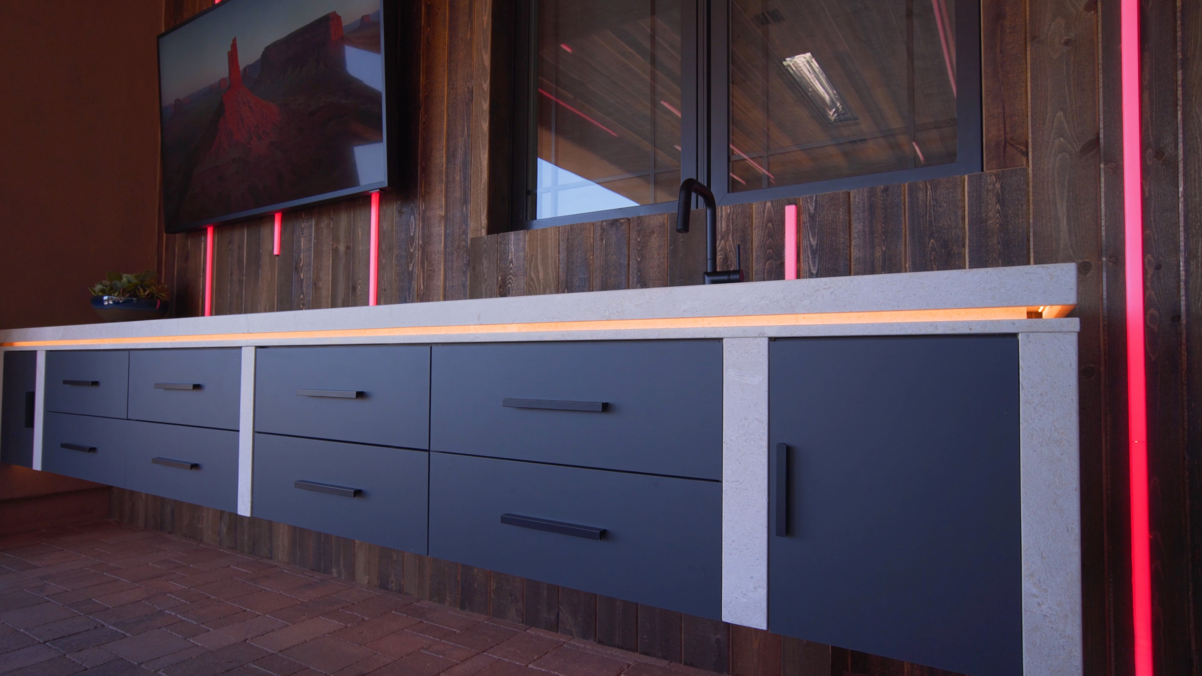 And of course- for the ultimate outdoor movie night- the Samsung Terrace Patio TV offers models for shade and sun applications that can withstand the elements and offer fantastic contrast and picture in all times of day. Even with all of this technology, the space can be easily managed thanks to home automation provided by Wipliance. A robust Control4 and Lutron ecosystem insures reliable performance and elegant touch and voice controls that can be managed from anywhere.
