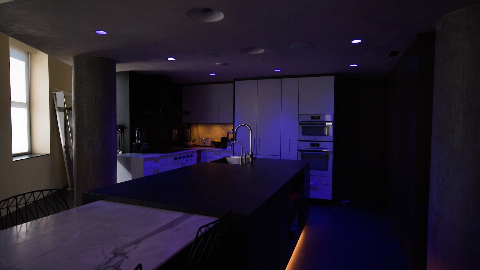 "We paid a lot of attention to lighting. We can tune (the Ketra lighting) to the temperature of the sun, which we find we really love. So it's 4000k more bluish temperature during the day, and when we are getting ready to go to bed at night, it warms up and makes you feel more cozy."