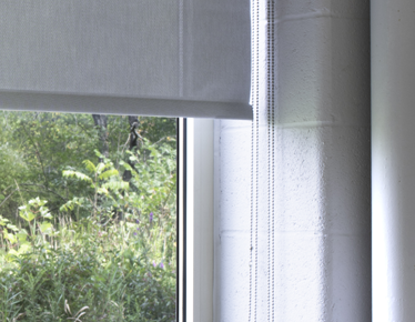 Offers chain-operated roller shades with a variety of fabrics. Hardware colors available include: white, black, bronze and silver.