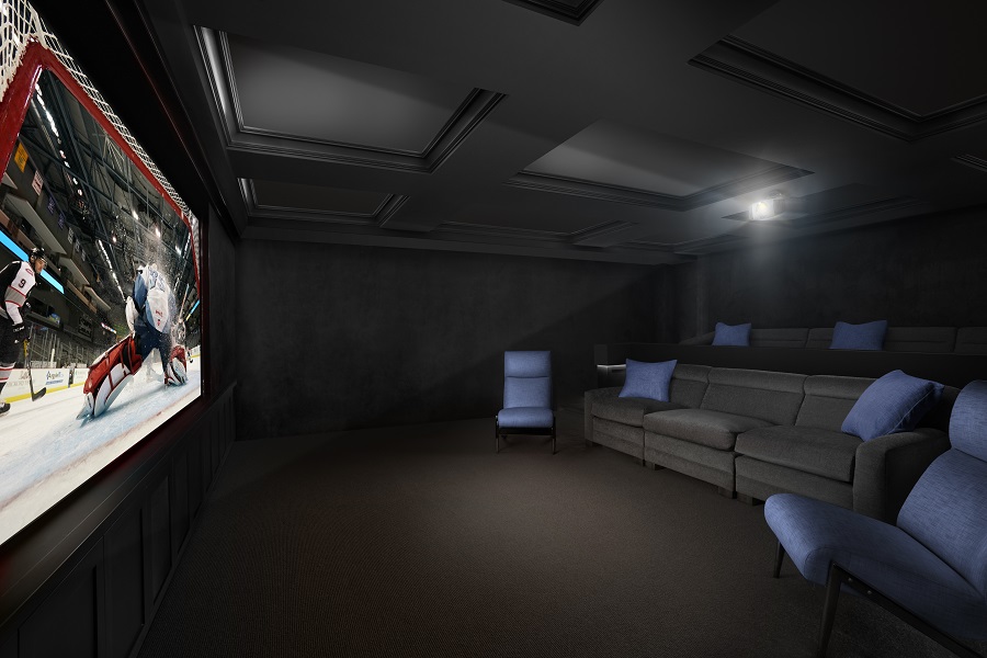 If your home theater has windows, consider adding room-darkening motorized shades that you can quickly lower with a button tap or voice command when you’re ready to watch something. Dual roller shades are another great option, which combine a light-filtering front shade for daytime relaxing and a blackout back shade that blocks natural light when you want to watch a movie.