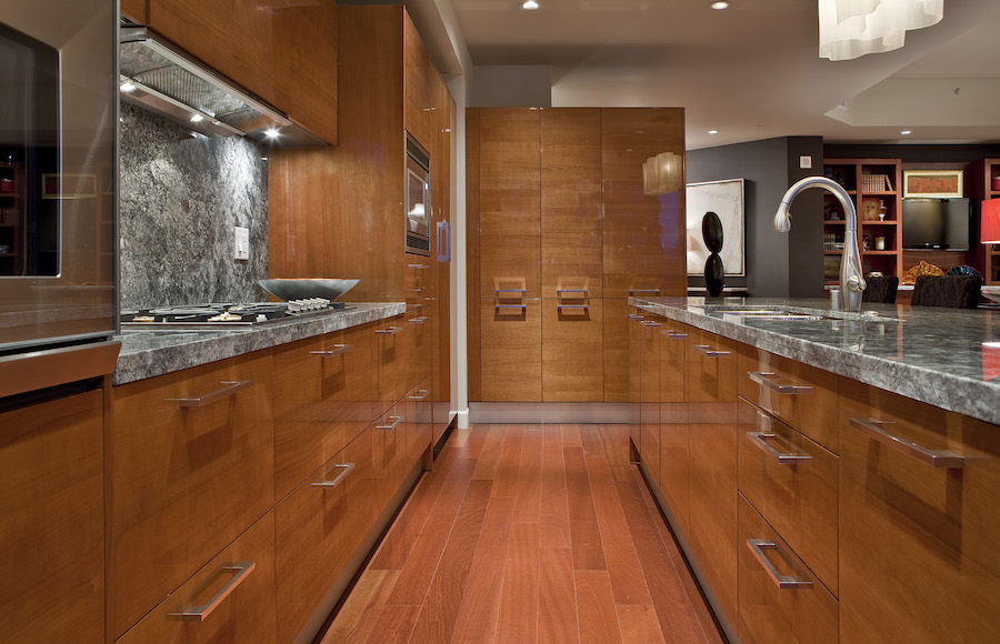 In the evening, your kids may need a little homework help as you work on dinner preparations. Your dining area is brightly lit for work, and the kitchen ambient and task lighting are also on for maximum visibility. When it's time for dinner, the push of a button on a customized wall-mounted keypad sets the stage for dinner, with softer lighting in the dining area on the chandelier and sconces and the kitchen softly lit for convenience and ambiance.