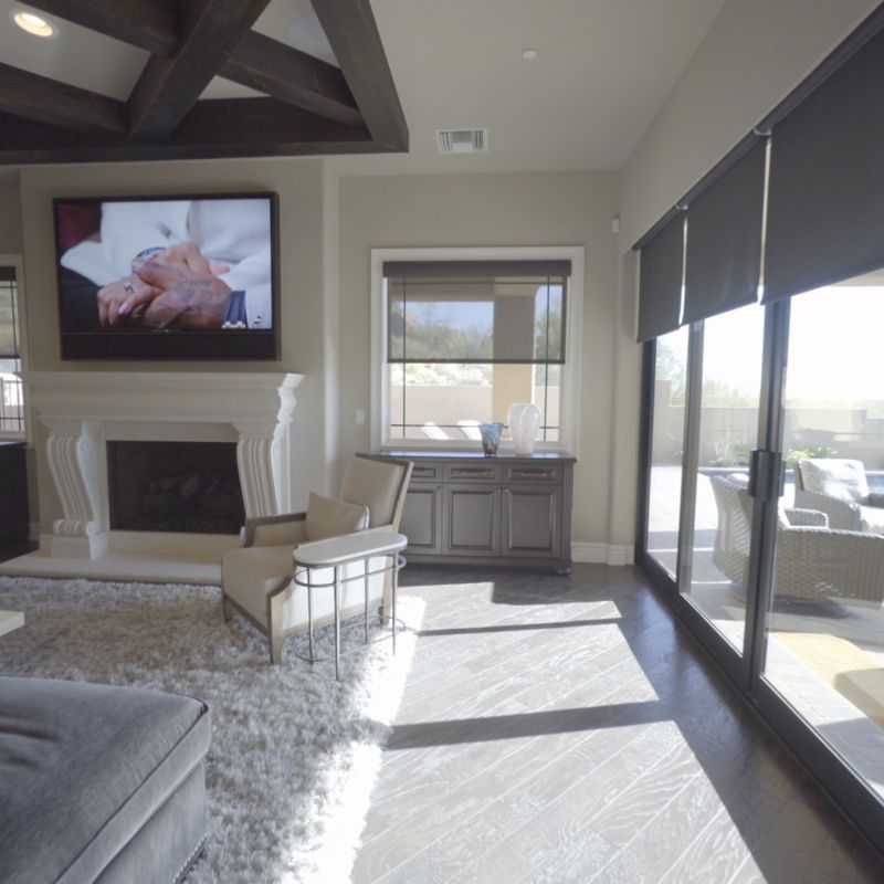 Our durable shading materials can weather any wind and storm. Plus, we integrate exterior motorized shades with smart home systems, letting you control the shades alongside lighting, audio, security, and more.